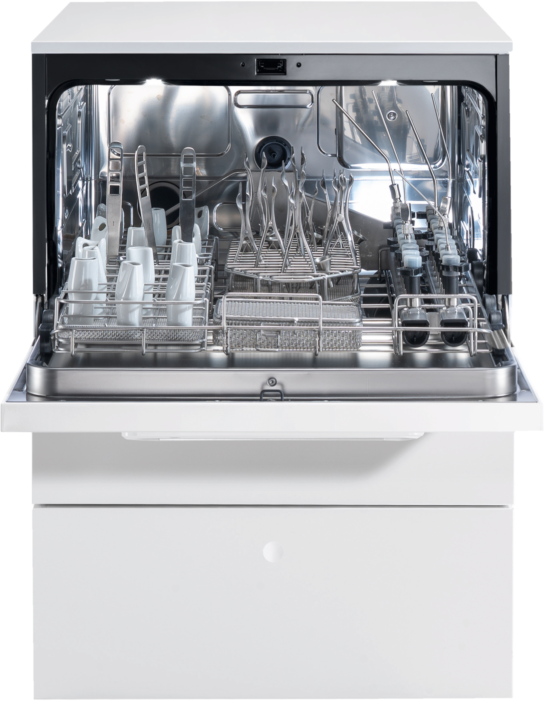 Reinigungs- und Desinfektionsgerät mit einer Spülebene mit einer Schublade für Prozesschemikalien, kurzen Laufzeiten & LAN/WLAN.
