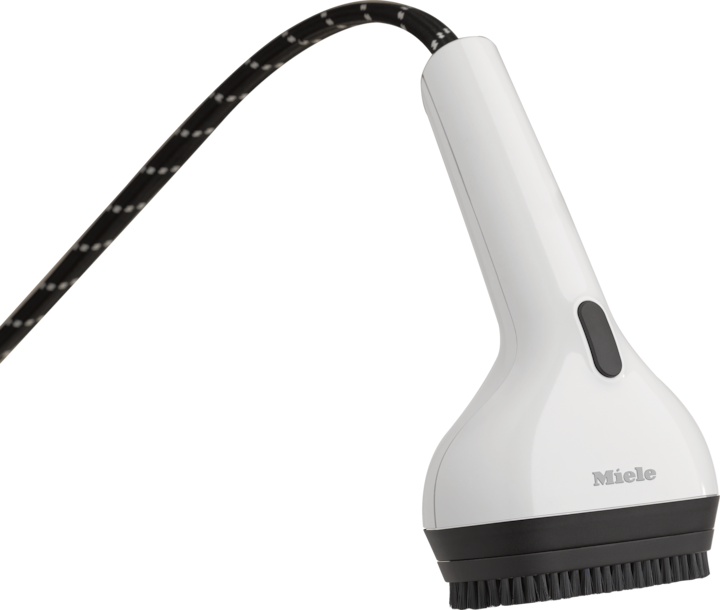 - Der Bürstenaufsatz richtet die Fasern der Textilien auf