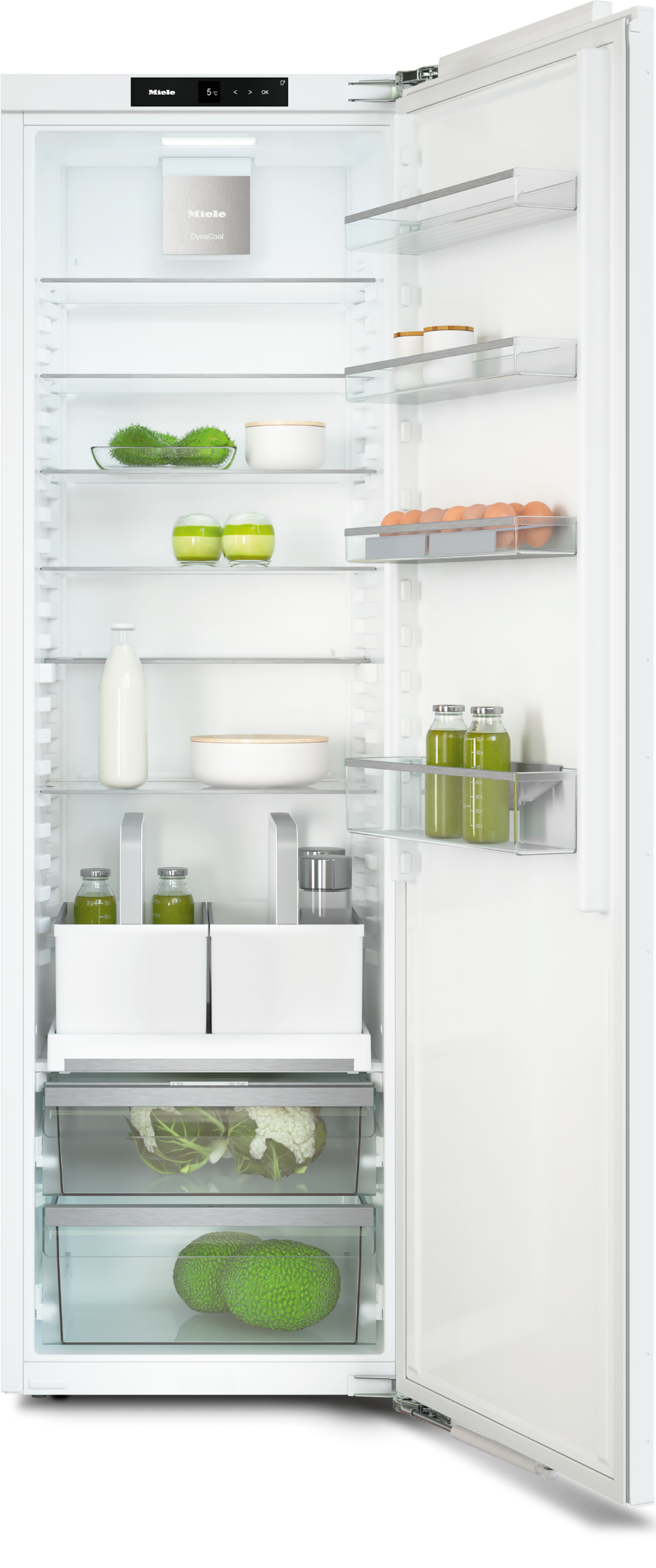 Halten Sie Obst und Gemüse in der geräumigen Schubladen mit idealer Luftfeuchtigkeit bis zu 2x länger frisch.