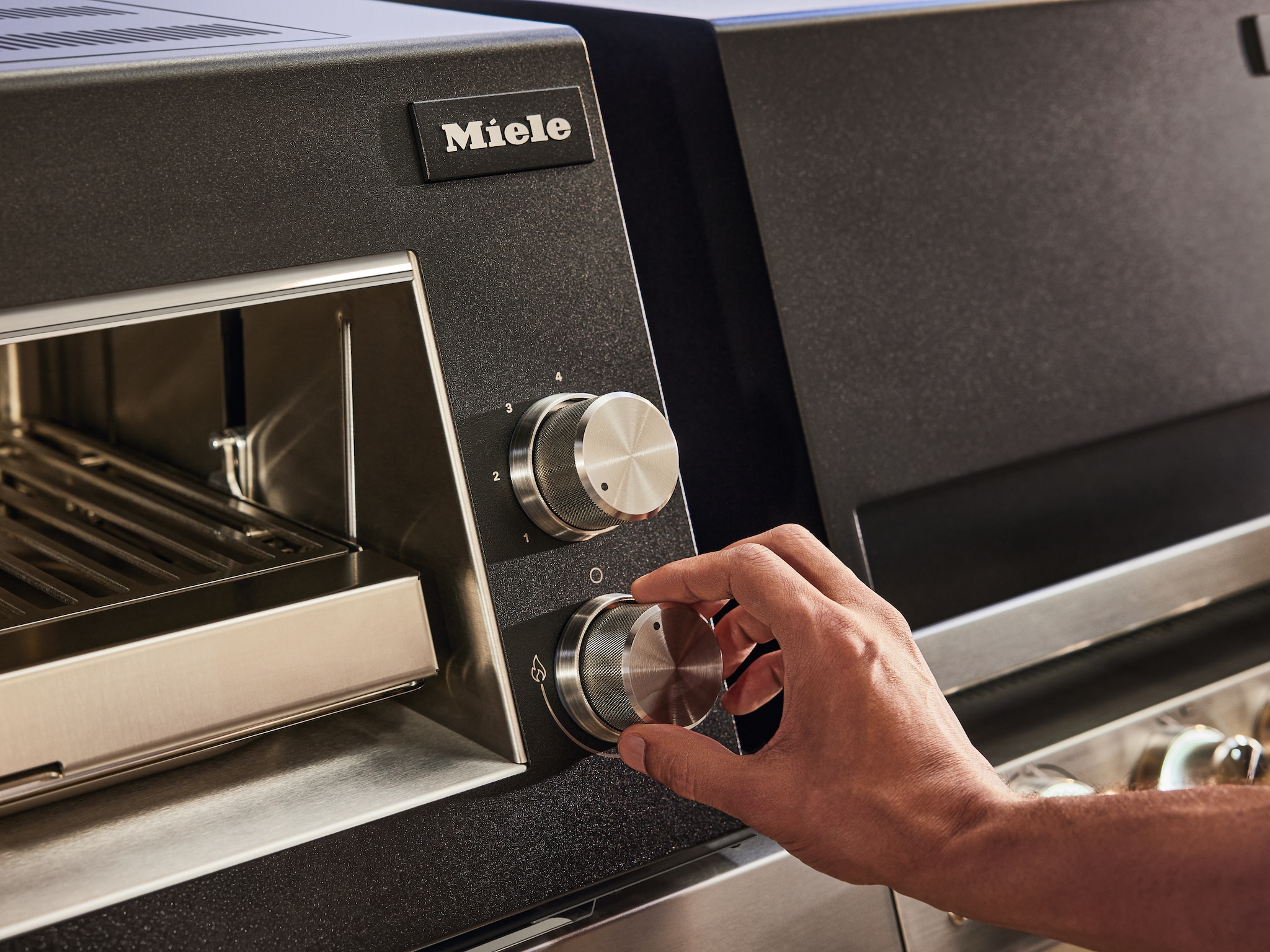 Die Edelstahl-Bedienknebel besitzen eine besonders rutschfeste Oberfläche für perfekten Halt.