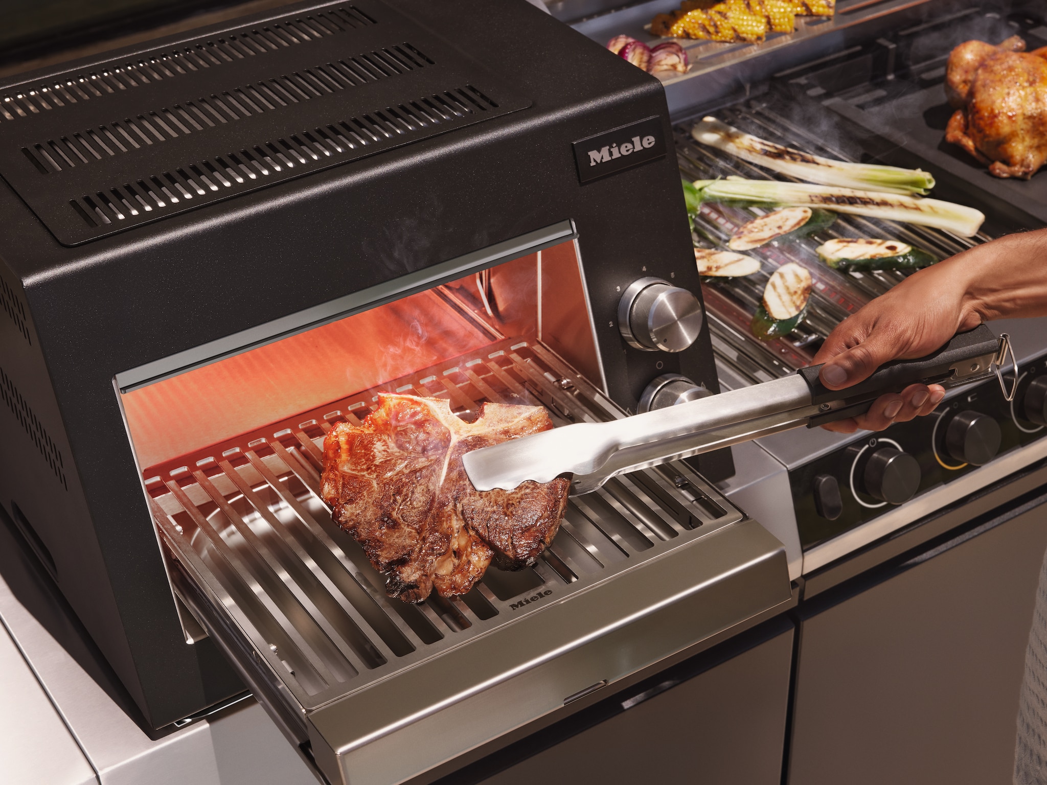 Grilltemperaturen von bis zu 900 °C3, verleihen Steaks die perfekte Kruste.