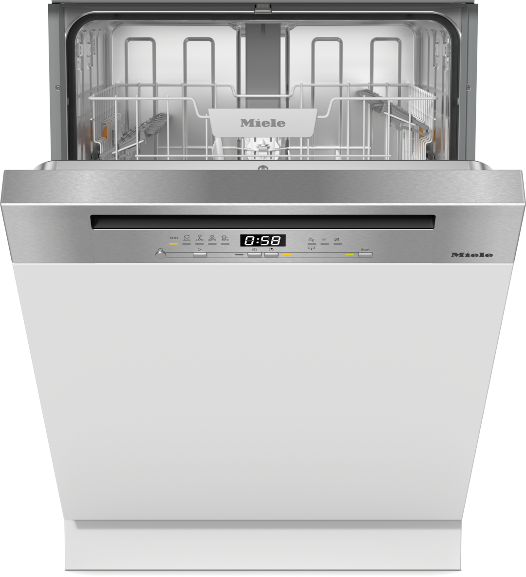 - Dank Startvorwahl können Sie den Spülbeginn bis zu 24 h im Voraus bestimmen