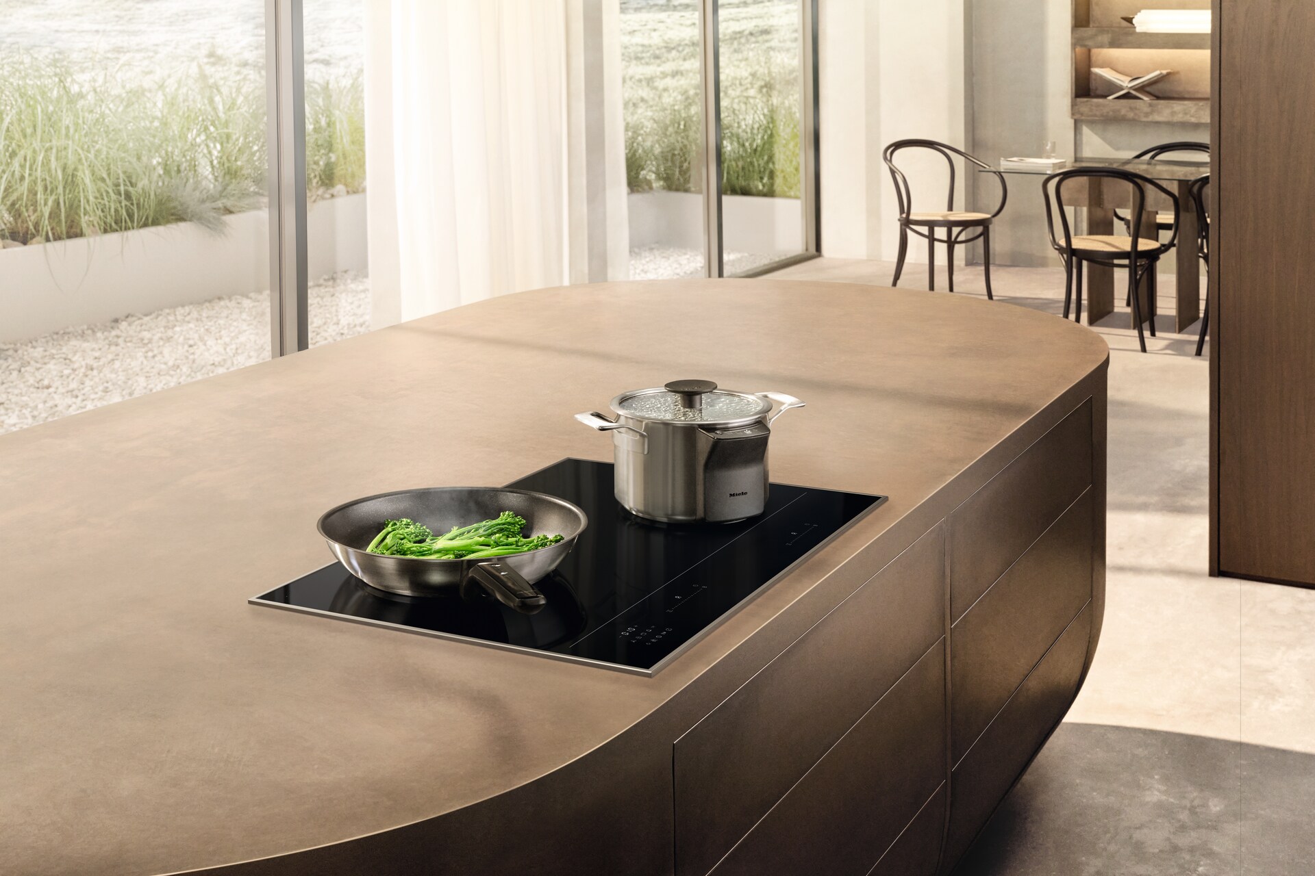 Die Bedienelemente bewegen sich mit Ihrem Kochgeschirr, um das Kochen einfacher zu gestalten.